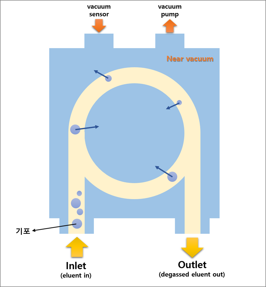 이동상이 장치 내부로 들어가 튜브를 통과하면, 기체가 빠져나가게 된다.